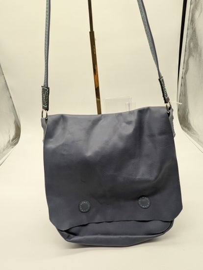 This bag is made with a crome tanned leather it only comes in Carolina Blue. this is a very spacious bag it has a snap closed pocket in the front and another pocket inside.