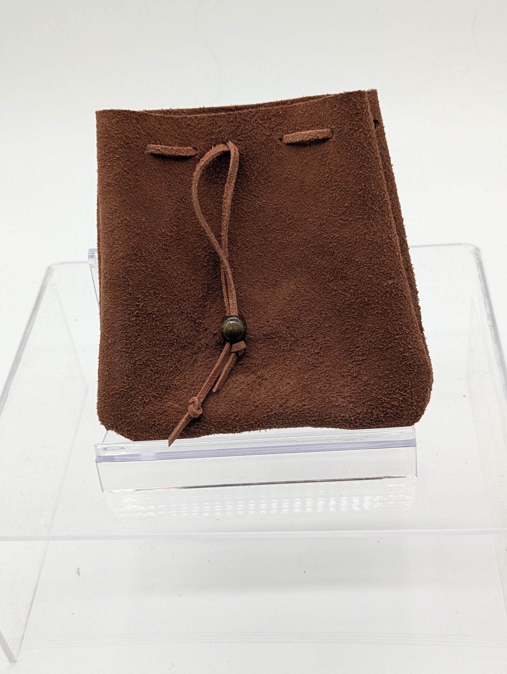 small suede drawstring bag
