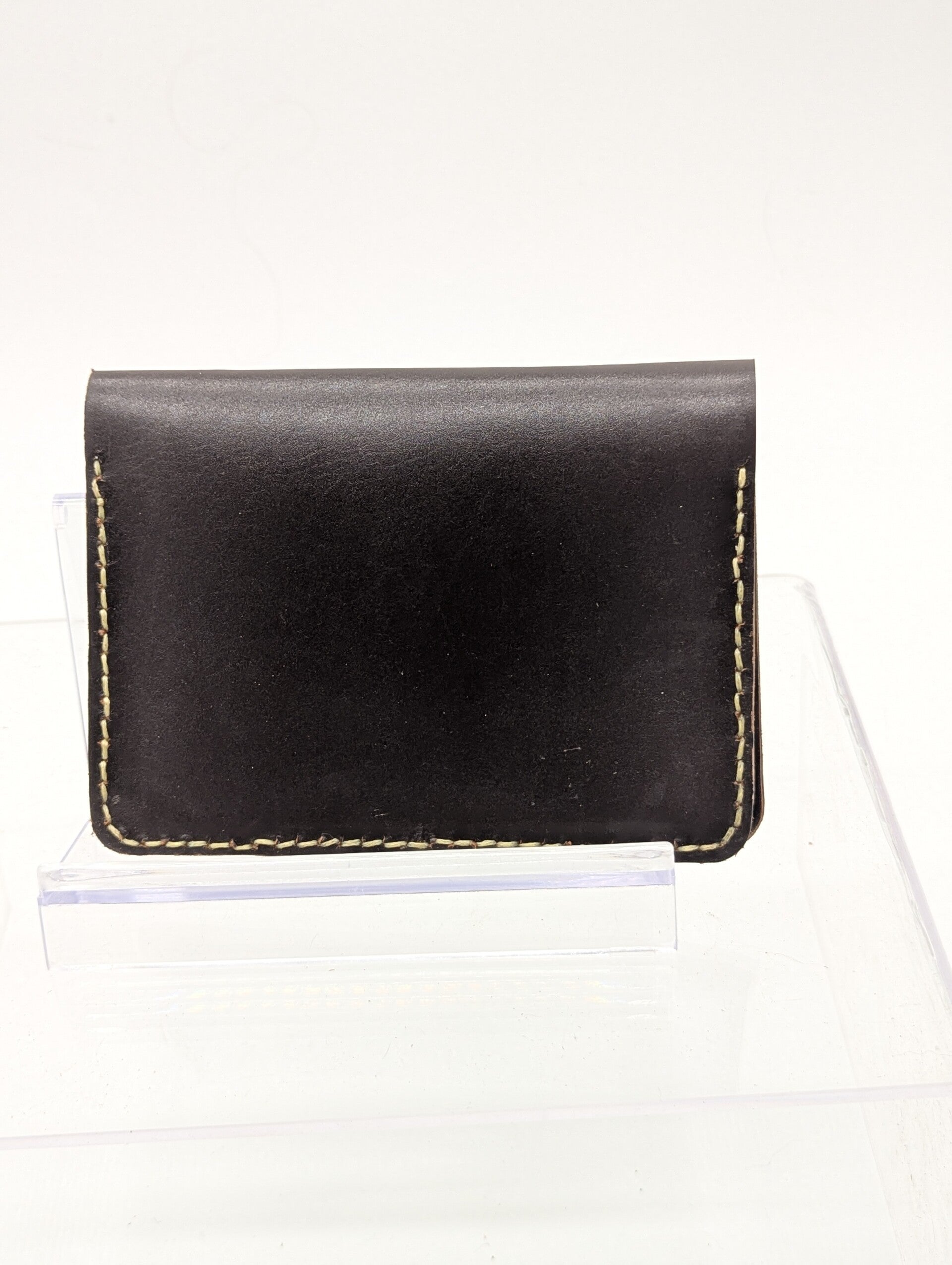 this is a wallet that has accent rivets has card slots and pockets for cash